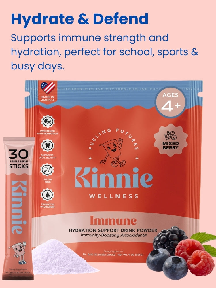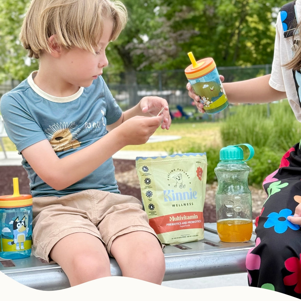 Kinnie has a proprietary blend of our favorite natural sweeteners, Monk Fruit and Xylitol. Monk fruit is a natural, zero-calorie sweetener that doesn't spike blood sugar levels, making it a kid-friendly alternative to sugar for maintaining a healthy diet. Xylitol is a natural sweetener that supports oral health by reducing the risk of cavities, making it an ideal choice for a kid's supplement. Our formulas contain just enough sweetener to cover our vitamin core and nothing more.